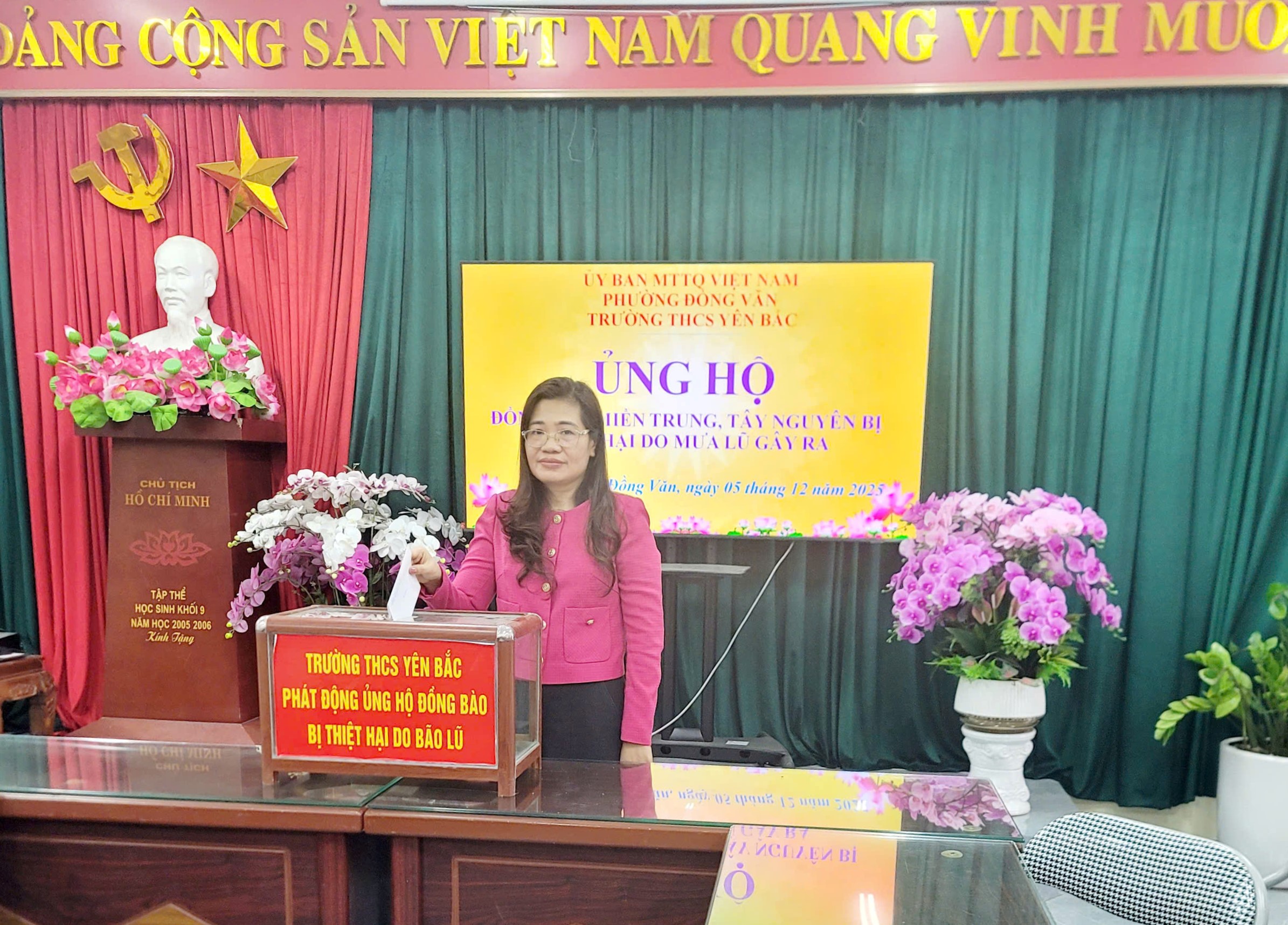 Hưởng ứng lời kêu gọi của UBMTTQ phường Đồng Văn, thầy và trò trường THCS Yên Bắc tích cực tham gia ủng hộ đồng bào miền Trung, Tây Nguyên bị ảnh hưởng do bão lũ. Tổng số tiền ủng hộ là 24.113.000 đồng (Hai mươi bốn triệu, một trăm mười ba nghìn đồng). Số tiền tuy không nhiều nhưng đó là một phần trách nhiệm, một sự sẻ chia góp phần động viên để miền Trung – Tây Nguyên nhanh khắc phục sau bão lũ.